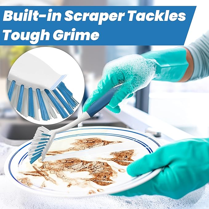 - Built-in Scraper for Tough Food Residue: No more soaking or scraping with knives; The integrated scraper effortlessly lifts stuck-on grime from pots, pans, and dishes, saving you time and elbow grease