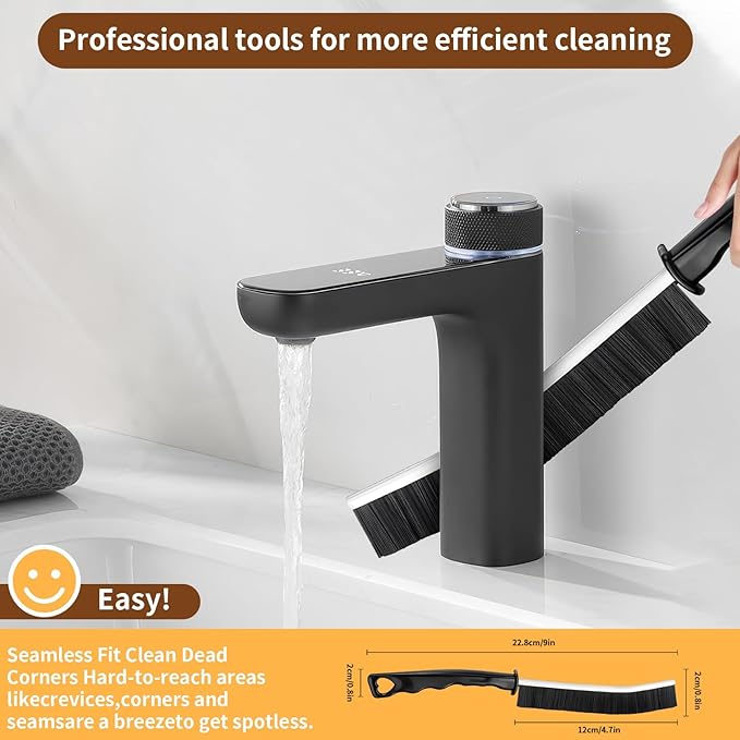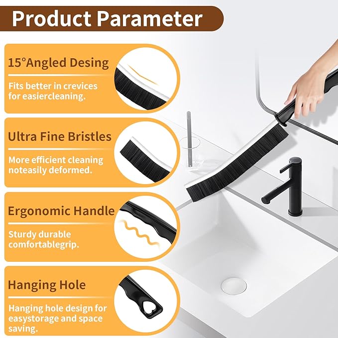 - Designed for Tight Spaces & Deep Gaps: This hard bristle crevice cleaning brush is specially designed for narrow gaps and hard-to-reach corners. Perfect for cleaning grout lines, window tracks, door seams, faucet bases, toilet rims and shower corners